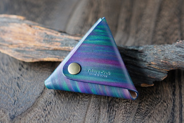 【8色】大きめの海のような三角コインケース 手染めヌメ