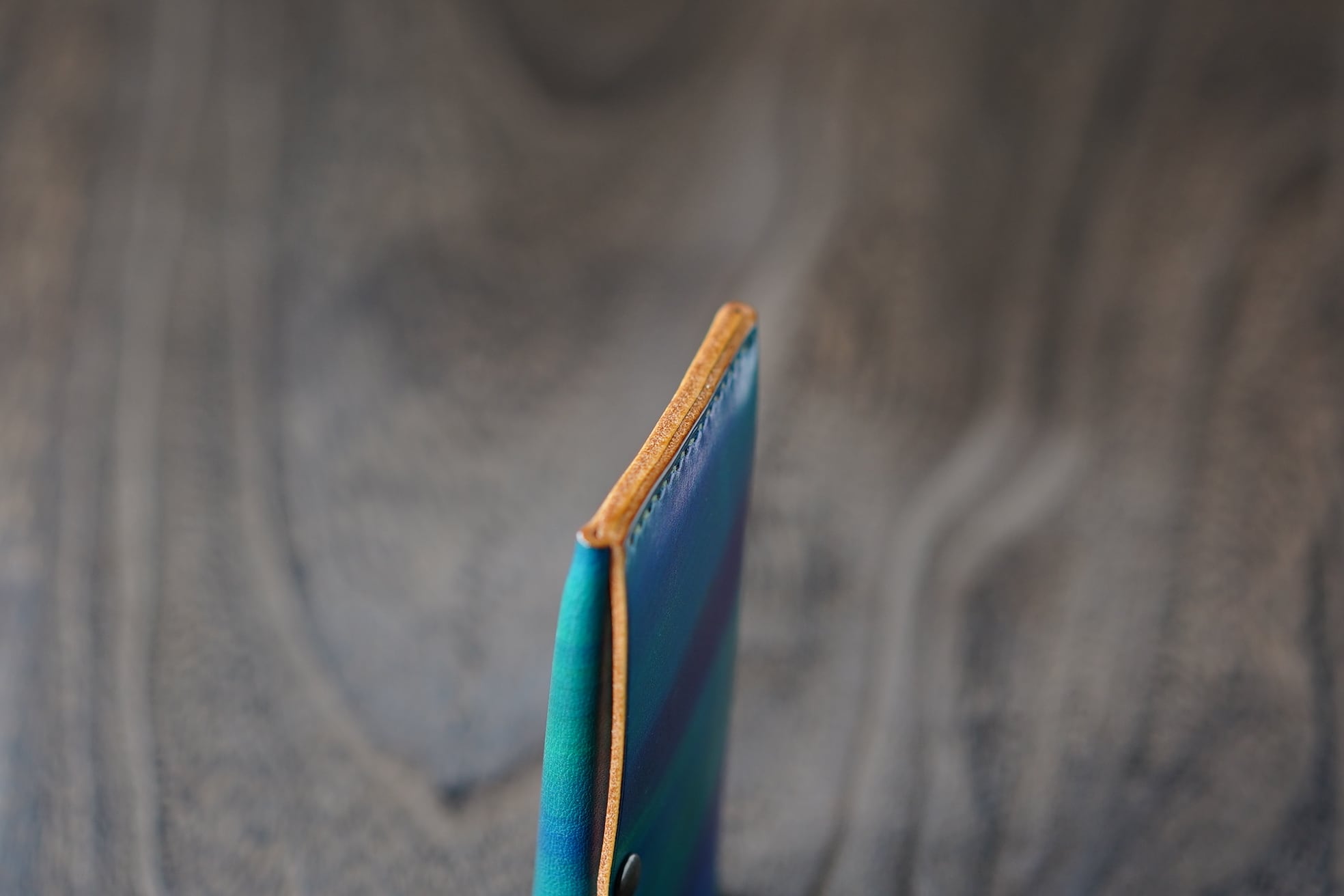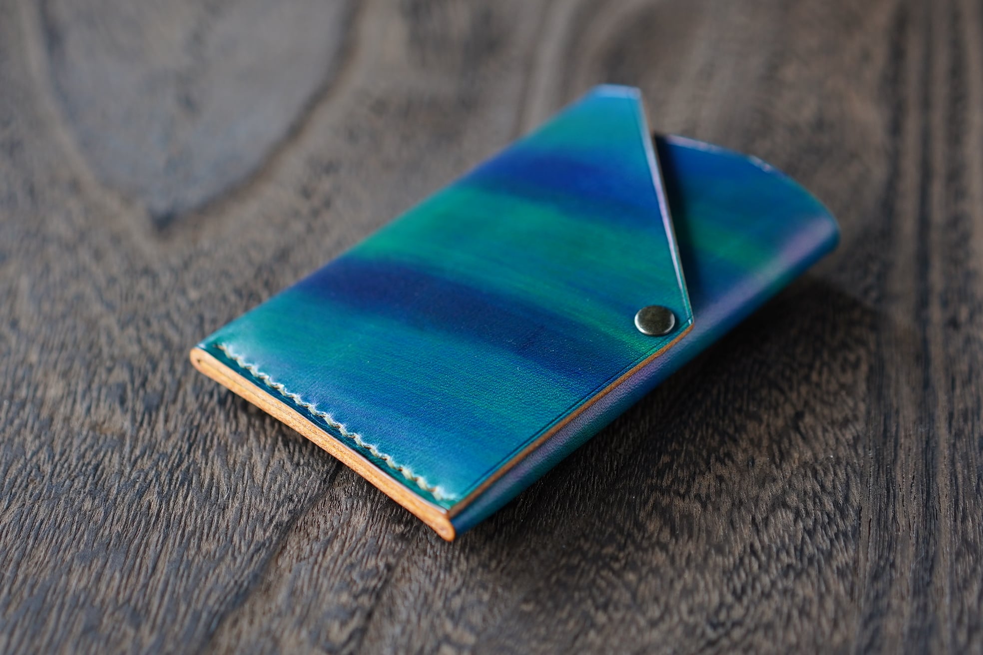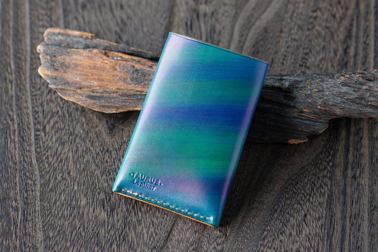 ブッテーロに地球をイメージして手染めしたMonolithicカードウォレットです。