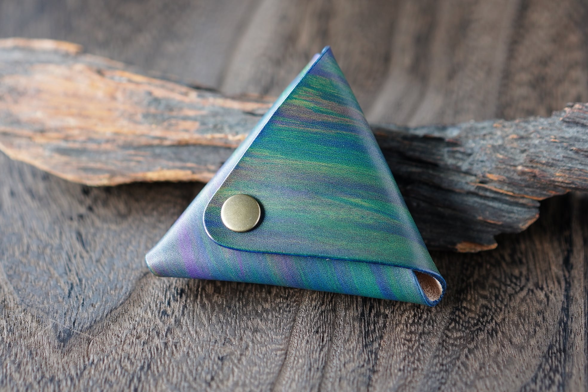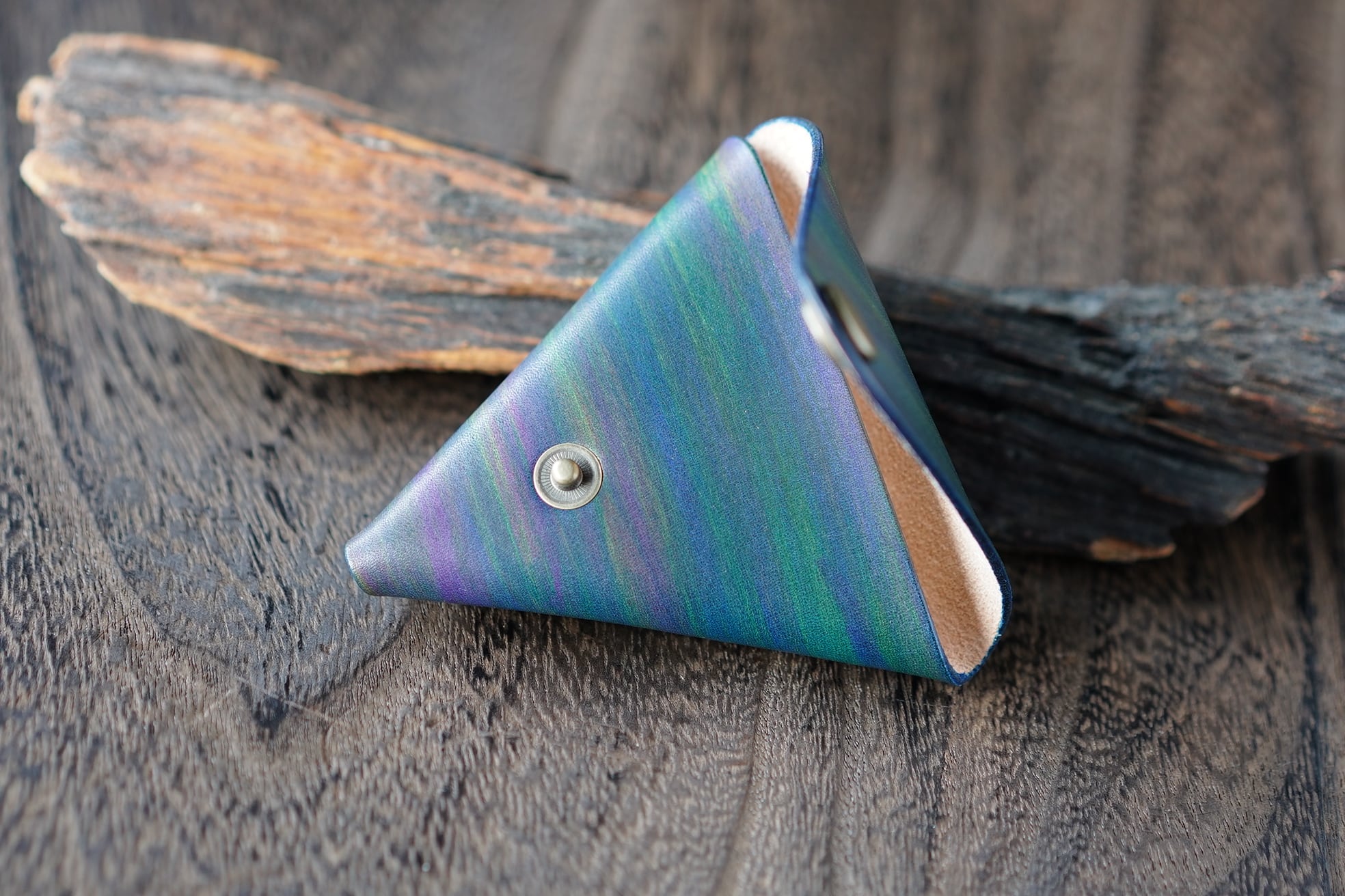 ヌメ革に地球をイメージして手染めしたコインケースです。