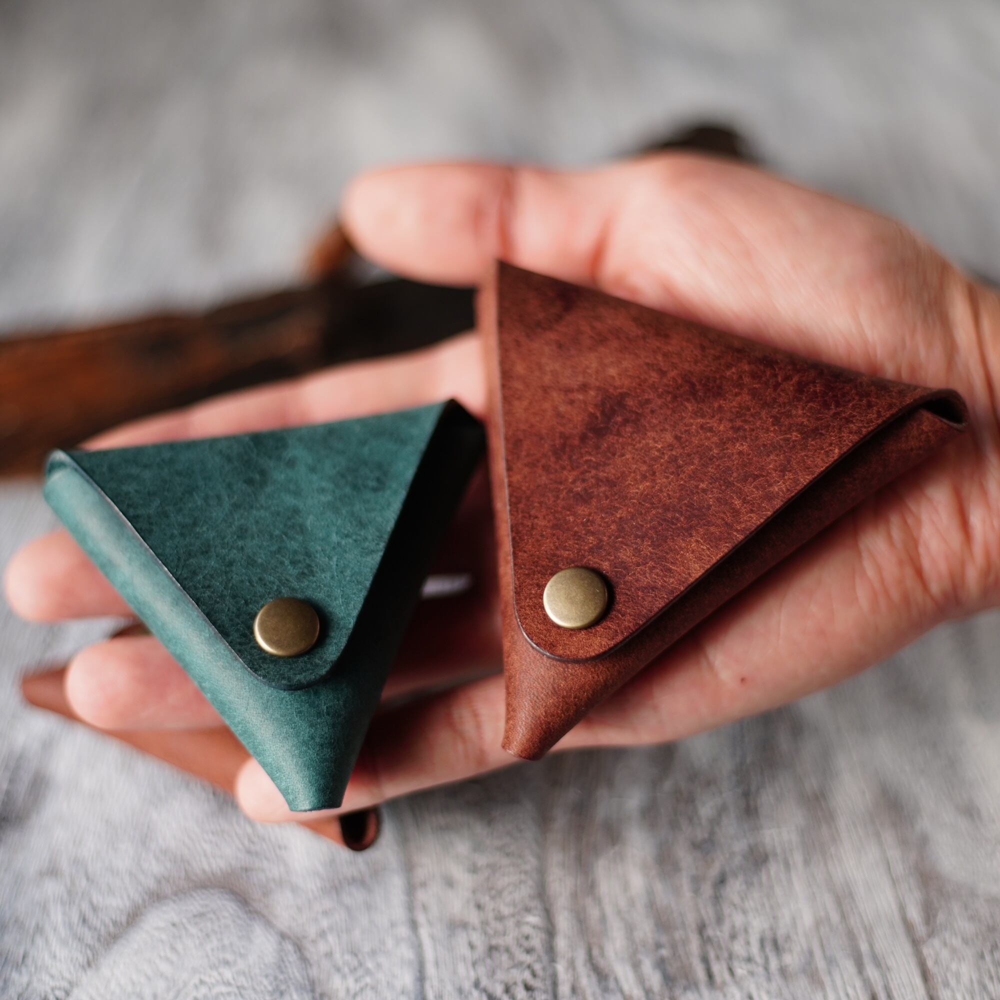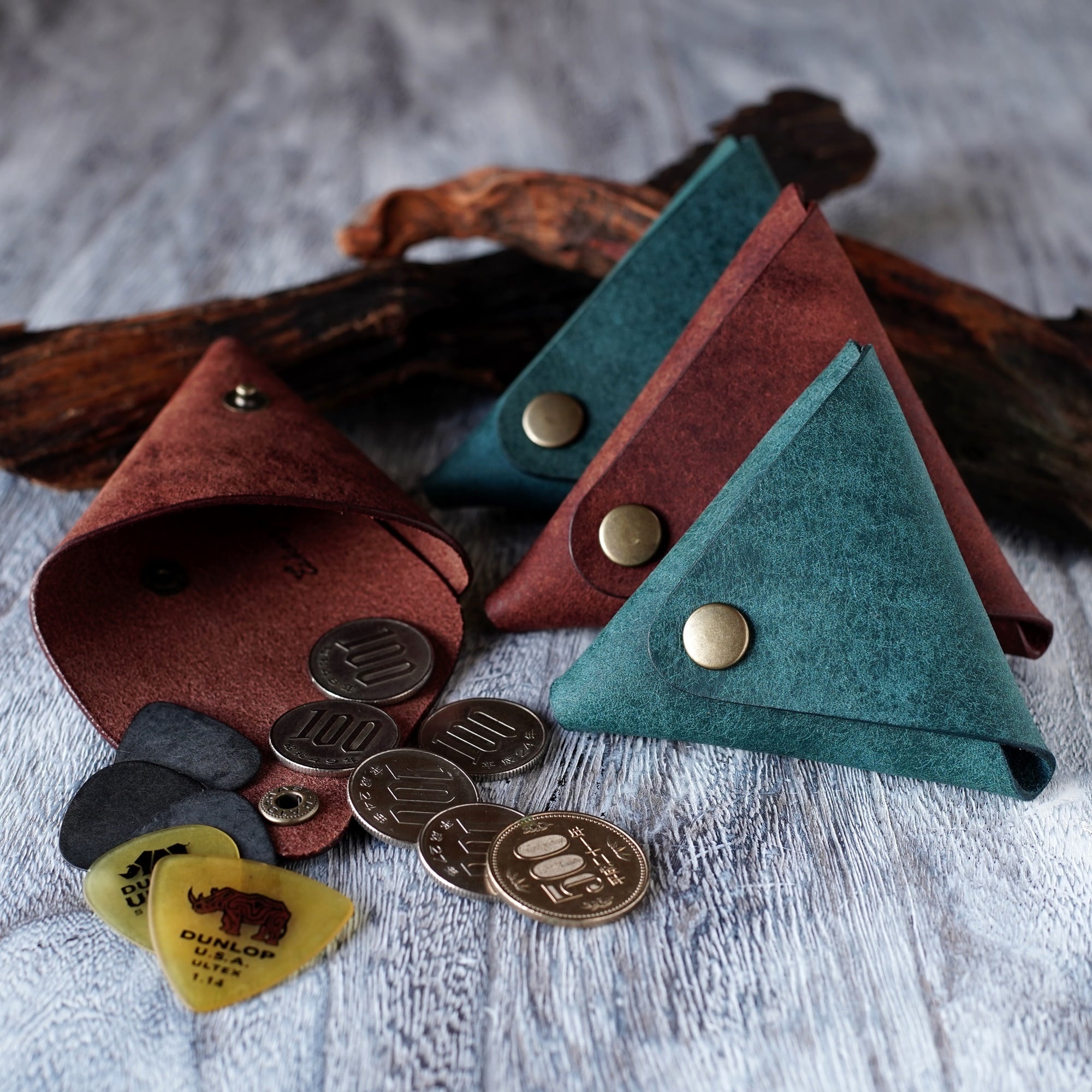大き目のプエブロレザーの三角コインケース ピックケース 小銭入れ