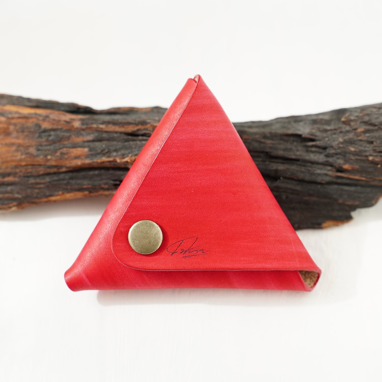 ローズのような三角コインケース 手染めレザー 小銭入れ ピックケース