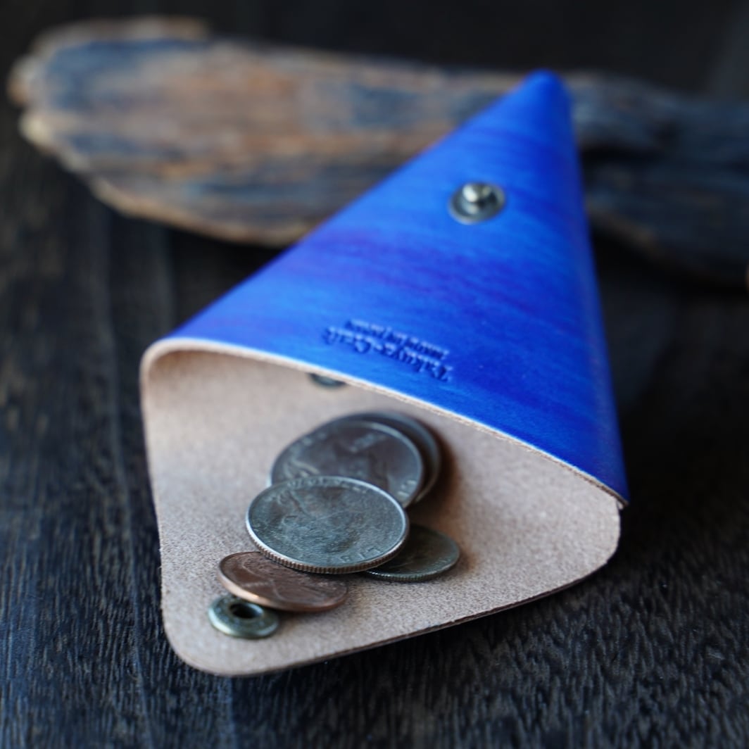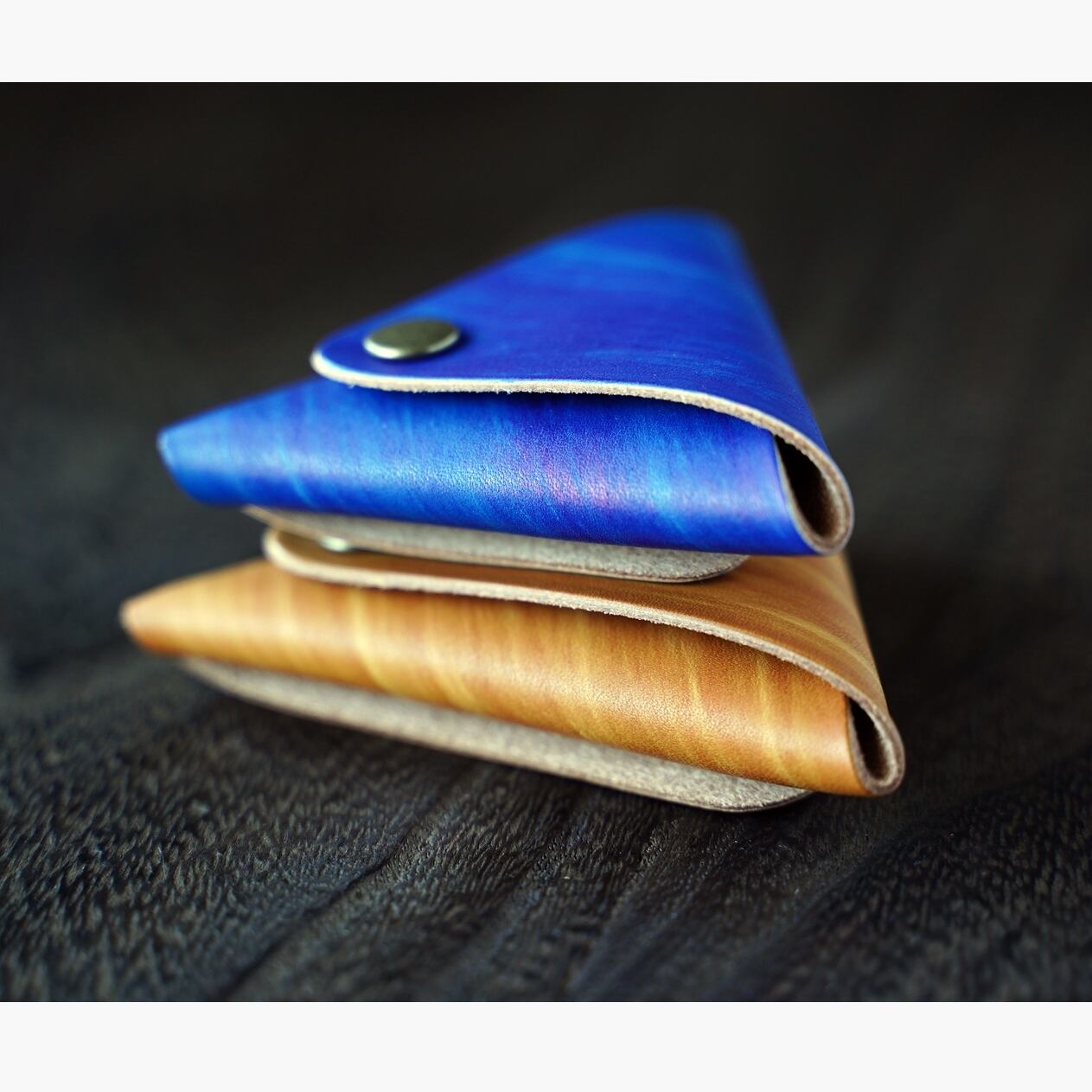 最高級のベジタブルタンニンレザーを手染めした三角コインケースになります。